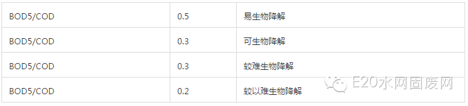 当BOD5/COD≥0.45时,不可生物降解的有机物仅仅占全部有机物的20%以下,而当BOD5/COD≤0.2时,不可生物降解的有机物已占全部有机物的60%以上。